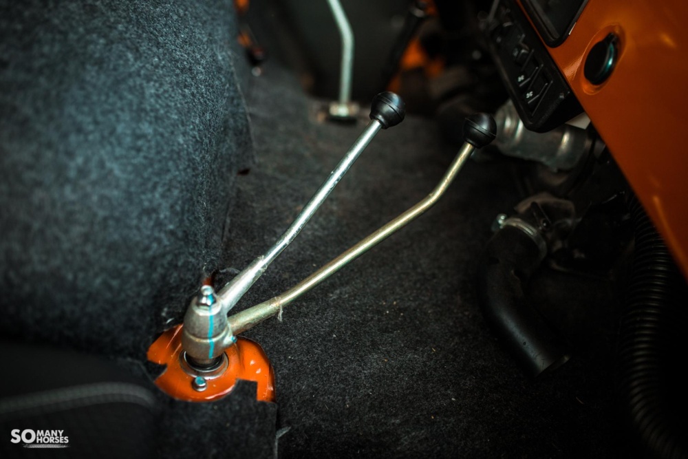 Рычаги переключения передач в раздаточной коробке имеют характерное усилие, и их назначение можно определить только интуитивно, потому что здесь нет никаких табличек с информацией. То же самое ожидает тех, кто хочет включить отопитель на максимум, потому что заслонка отопителя управляется выключателем, расположенным рядом с водительским сиденьем, где раньше у старых УАЗов была ручка для подачи воздуха.