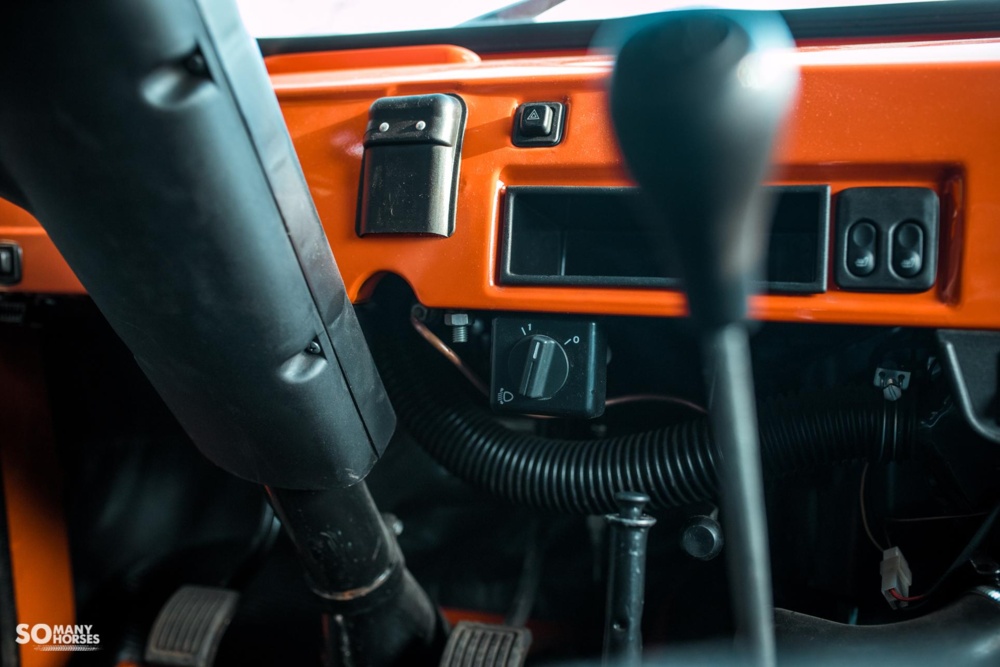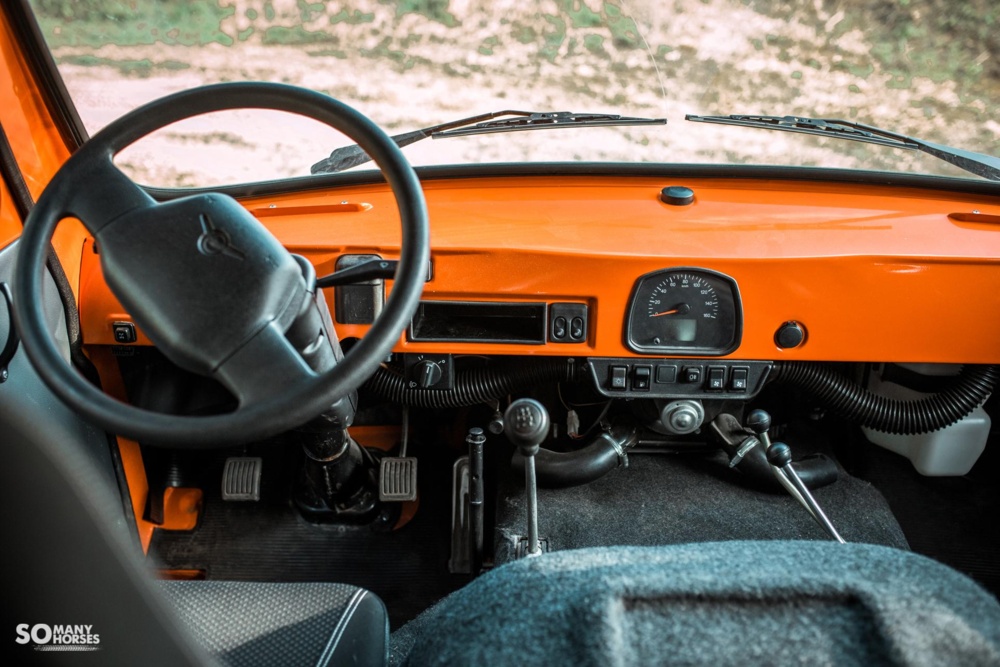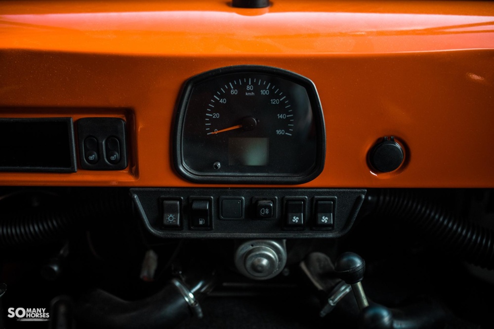 Педаль газа напольная, и приятно на нее наступать. Не только из-за старомодного расположения. Уазик оказался неожиданно быстрым! Если правильно переключаю передачи (механизм тяжелый, с большим ходом рычага), мой оранжевый батискаф не мешает городскому потоку автомобилей.