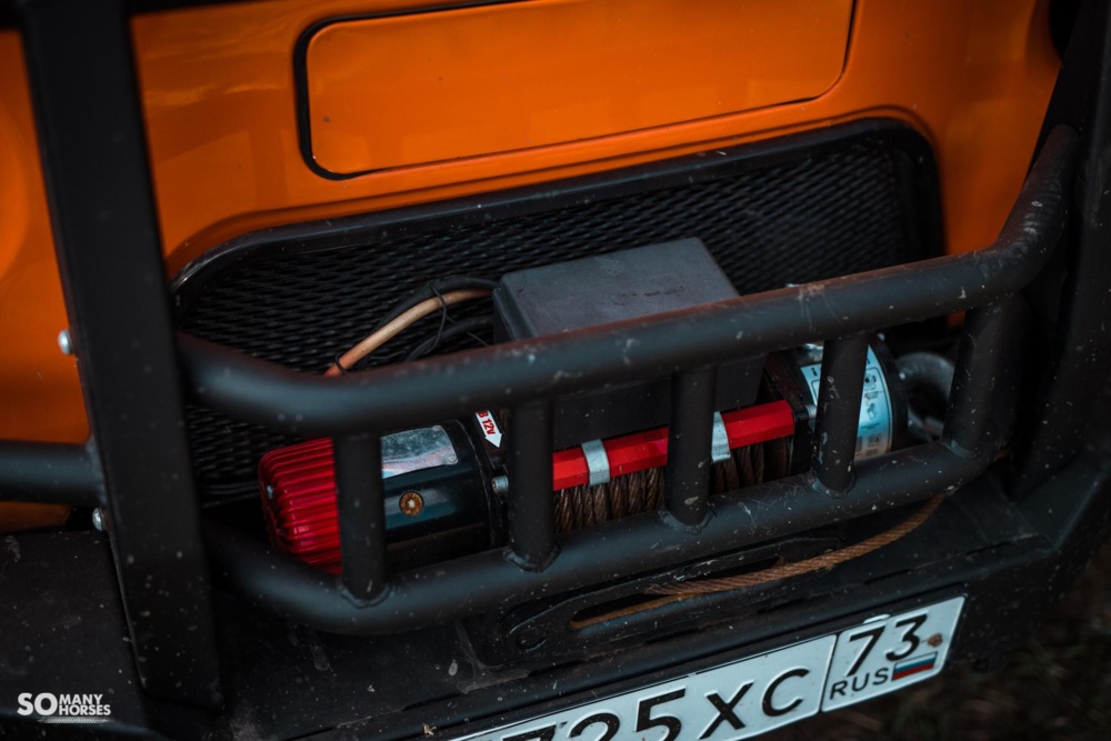 Кроме того, "Буханка" была оборудована силовыми бамперами, экспедиционным багажником с лестницей, защитой рулевых тяг, лебедкой, внедорожными шинами Maxxis AT980, съемным тягово-сцепным устройством и запасным колесом на специальном кронштейне. Все установленное оборудование сертифицировано и не требует отдельной регистрации в ГИБДД.
